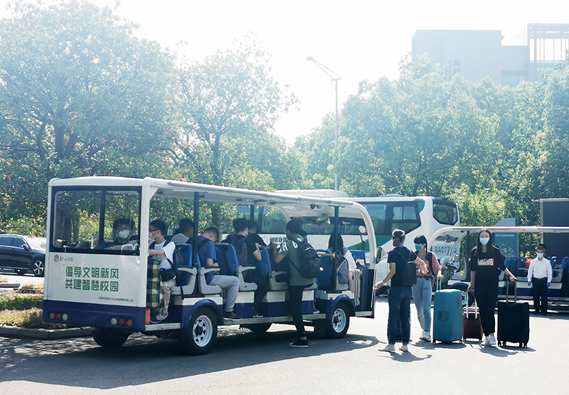 为方便乘坐公共交通工具的学生顺利返回学校,威尼斯官网在南医大·江苏经贸学院地铁站设置接站点;学校在二号门和四号门均设置了校门口接驳至宿舍站的小公交。清晨7点,负责接站的老师们早早来到各个站点,熟悉现场情况,提前准备物资,一切准备就绪,只待把毕业生安全带回家。工作人员在烈日下忙碌着,从接站车到校内小公交,从校门口到宿舍站,路上的风景不同,但同样的是学子回家的期待与老师温暖的守护。一天下来,仅从地铁站到学校的接驳校车就跑了60多趟,十几个小时的连续坚守和数千名学生的顺利、安全返校,让工作人员们成就感满满。