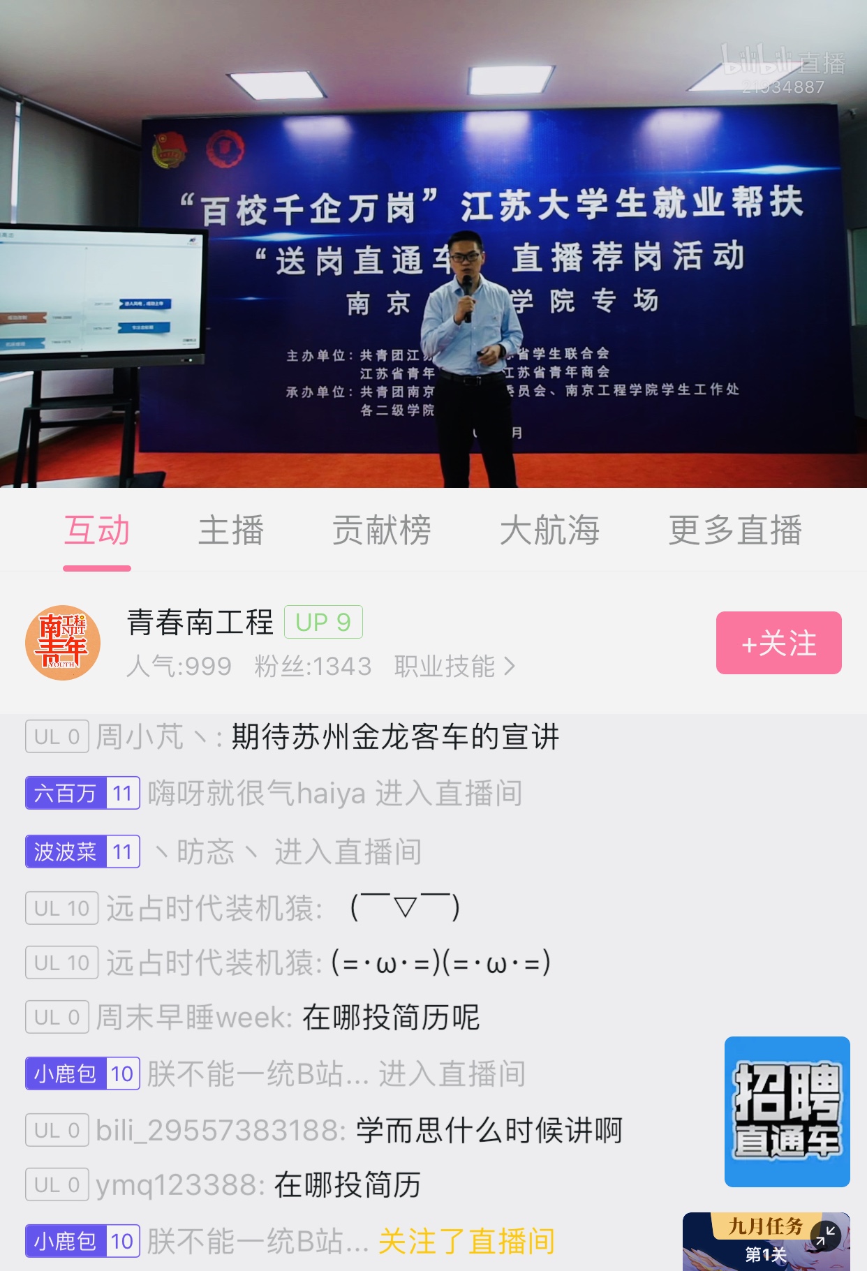 此次活动邀请到南瑞集团有限公司、中国电子科技集团公司第十四研究所、南京康尼机电股份有限公司等13家省内知名企业参与直播,共带来1400多个就业岗位,涉及机械设计、电气自动化、能源与动力工程、自动化、财会、计算机、管理学多个专业。活动设有直播荐岗、现场直聘、企业邀请等环节,13家企业主管化身荐岗主播,就公司基本情况、发展规划、求职需求等方面作了具体介绍。活动现场互动热烈,在线参与人数约3000人,“主播”们还就毕业们关心的简历制作、薪资、晋升渠道等问题作了指导与解答。