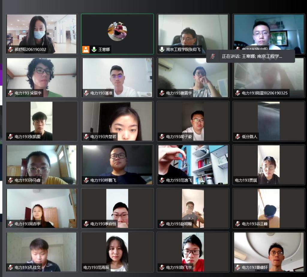 张仰飞副院长还结合今年的考研和电力工程学院考国网的数据,对同学们的学业情况进行了详细的分析,并进行学业上的指导,从“收集多种书籍资料、从不同角度理解知识点、通过大量练习来巩固课堂学习”等方面分享了专业学习的方法。“居家学习效率很低,容易分心,老师有没有什么好办法?”“如果考研,哪些高校的哪些专业更加适合我们?”面对同学们的疑惑,他一一为大家指点迷津。“做好自我管理、自我规划,才能实现自我发展”,他希望同学们不要因为疫情放松了自我要求,越是有难度,越要加强自我“练兵”,用适合自己的方式努力学习、增强本领。“最成功的经验是点滴积累,一步一个脚印才能行稳致远”,无论是选择考研、考国网还是就业,他希望大家都能脚踏实地,继续保持一颗责任心、一颗敬畏心、一颗专注心、一颗进取心,砥砺品行、磨砺意志、奋发图强,成为为国分忧、勇于担当的栋梁之才。