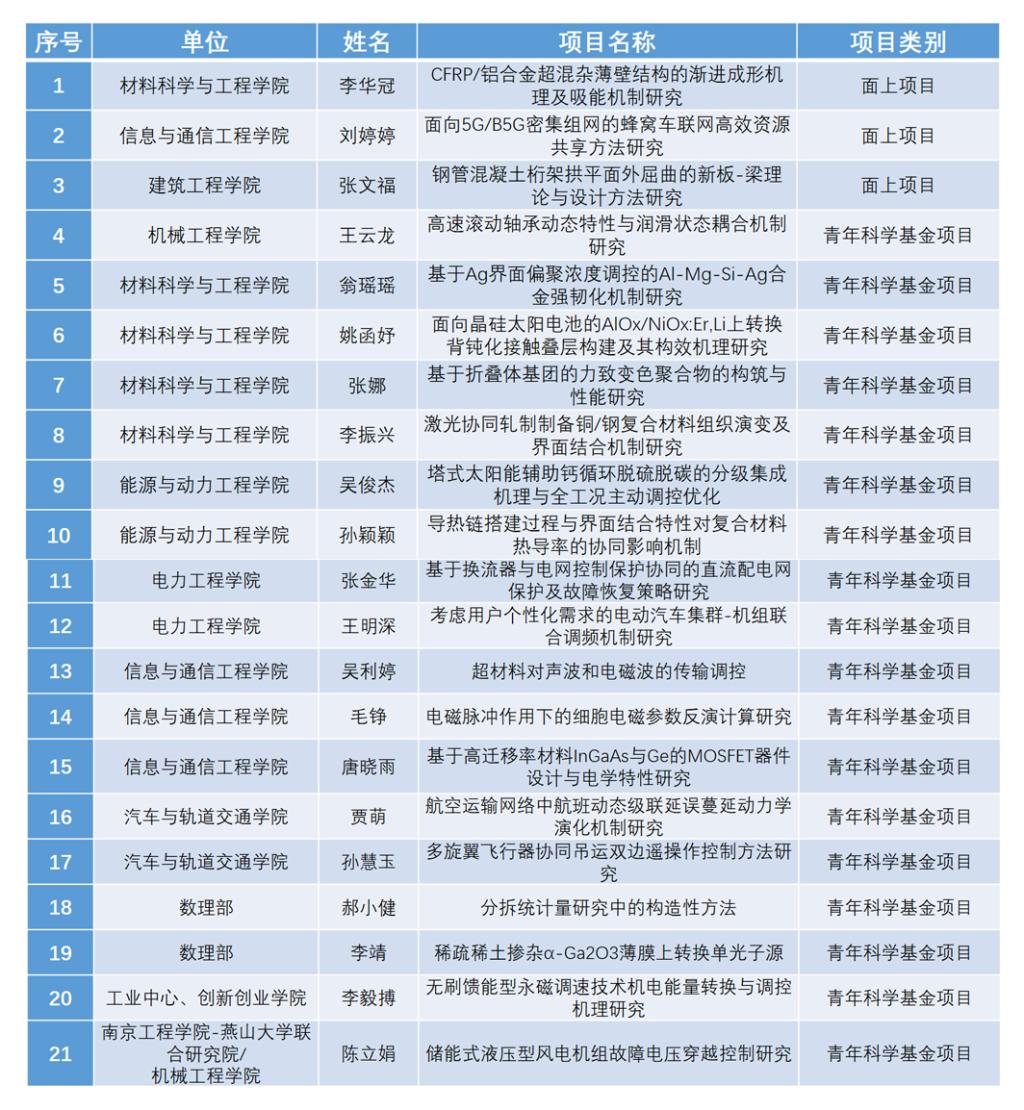 威尼斯官网获批21项国家自然科学基金项目立项资助