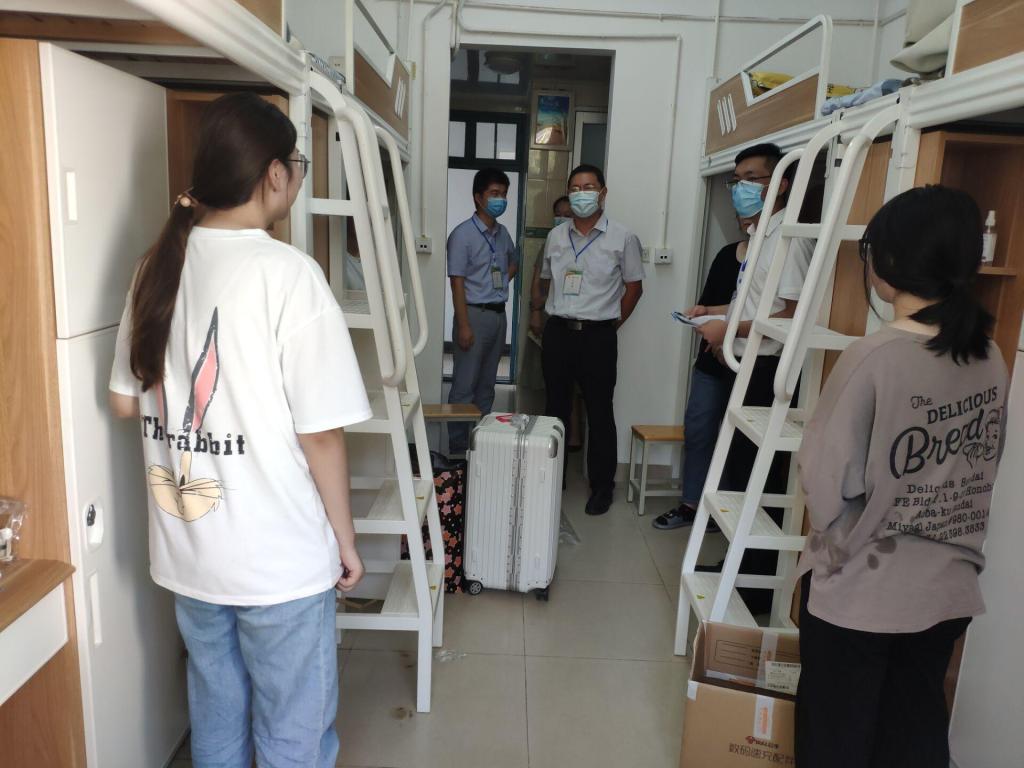 在新生宿舍里,朱晓春副院长与同学们亲切交流,了解他们的入住情况,详细询问同学们来自哪里、饮食是否适应、生活上能否习惯,并不时叮嘱同学们要尽快适应新环境,及时调整状态,互帮互助,融入集体。他还重点提醒同学们要提高安全防范意识,注意用水用电安全,妥善保管自己的贵重物品,疫情防控措施一点不能放松。