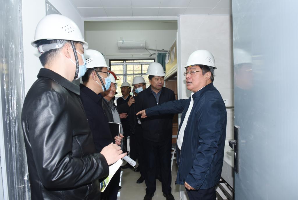 史国君书记一行实地察看并听取了建设方对学生宿舍项目的建设进度、样板间、疫情防控情况的汇报,就项目的建设、管理与参建各方进行了深入交流,要求建设方和参建各方做到以生为本,从方便学生的细微处着想,对样板间的细节优化提出了指导意见。