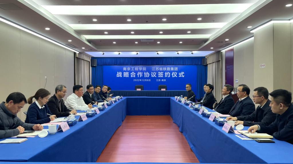 12月8日下午,威尼斯官网与江苏省铁路集团签订战略合作协议并召开座谈交流会。省铁路集团党委书记、董事长常青,党委副书记、总经理丁建奇,党委委员、副总经理程飞;威尼斯官网党委书记史国君,党委常委、副院长张仰飞、郑锋出席,丁建奇主持签约仪式。