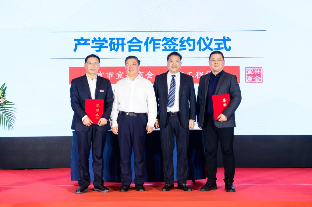 史国君书记对商会会员大会的顺利召开和合作协议的顺利签署表示热烈的祝贺。史书记表示,长期以来,学校坚持走多元协同产教融合的办学道路,坚持“以服务求发展、以贡献求支持”的办学宗旨,与江宁区、淮安市、宜兴市等地签署战略合作协议,构建校地融合发展共同体,助力区域发展和企业转型升级。特别是与宜兴市人民政府共建宜兴产业学院,得到了校地双方的高度重视和广大宜兴企业的全力支持,已形成良性发展态势,成为全省合作典范。史书记指出,南京市宜兴商会作为在宁宜兴企业家之家,不仅是企业家们沟通交流的平台,而且成为与社会各界拓展合作领域、展示宜兴形象的良好渠道。他希望双方能以本次签署战略协议为契机,共同推进高素质应用型人才培养,高价值科研成果培育,高水平平台共建等全方位多领域的对接与合作,努力实现互利共赢共同发展。会上,张仰飞副院长代表学校与宜兴商会签订战略合作协议。