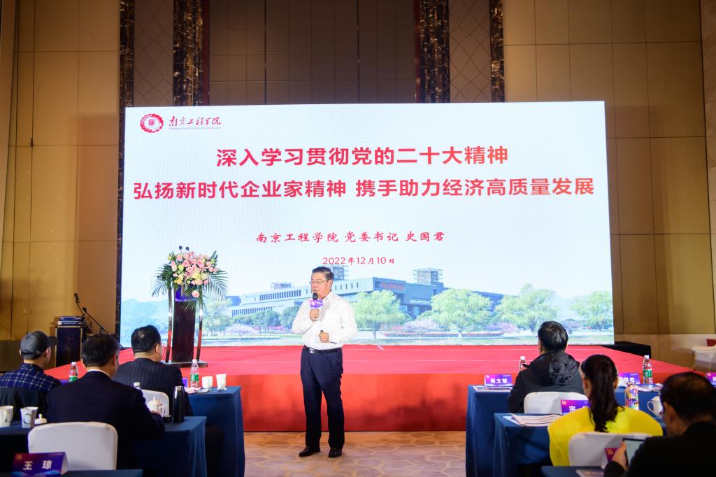 12月10日,南京市宜兴商会第四届第三次会员大会暨新春联谊会在南京召开。校党委书记史国君受邀出席签约仪式环节,并作党的二十大精神宣讲。党委常委、副院长张仰飞陪同参加。