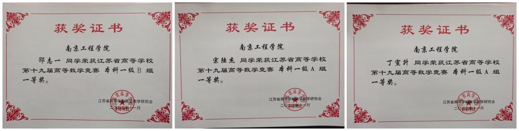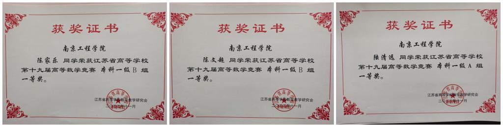 威尼斯官网学子在省高等学校第十九届高等数学竞赛中喜获佳绩