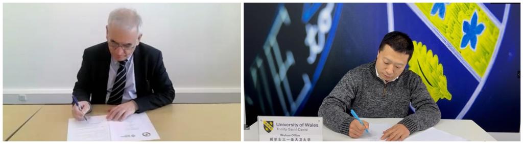 会上,威尼斯官网与英国思克莱德大学、威尔士三一圣大卫大学、韩国又松大学、泰国格乐大学等四所境外友好合作高校线上签署国际联合培养研究生项目的谅解备忘录,标志着硕士研究生国际联合培养工作正式启动。威尔士三一圣大卫大学还委托党委常委、副院长朱晓春教授向威尼斯官网艺术与设计学院院长郑静教授颁发兼职博士生导师的聘书。