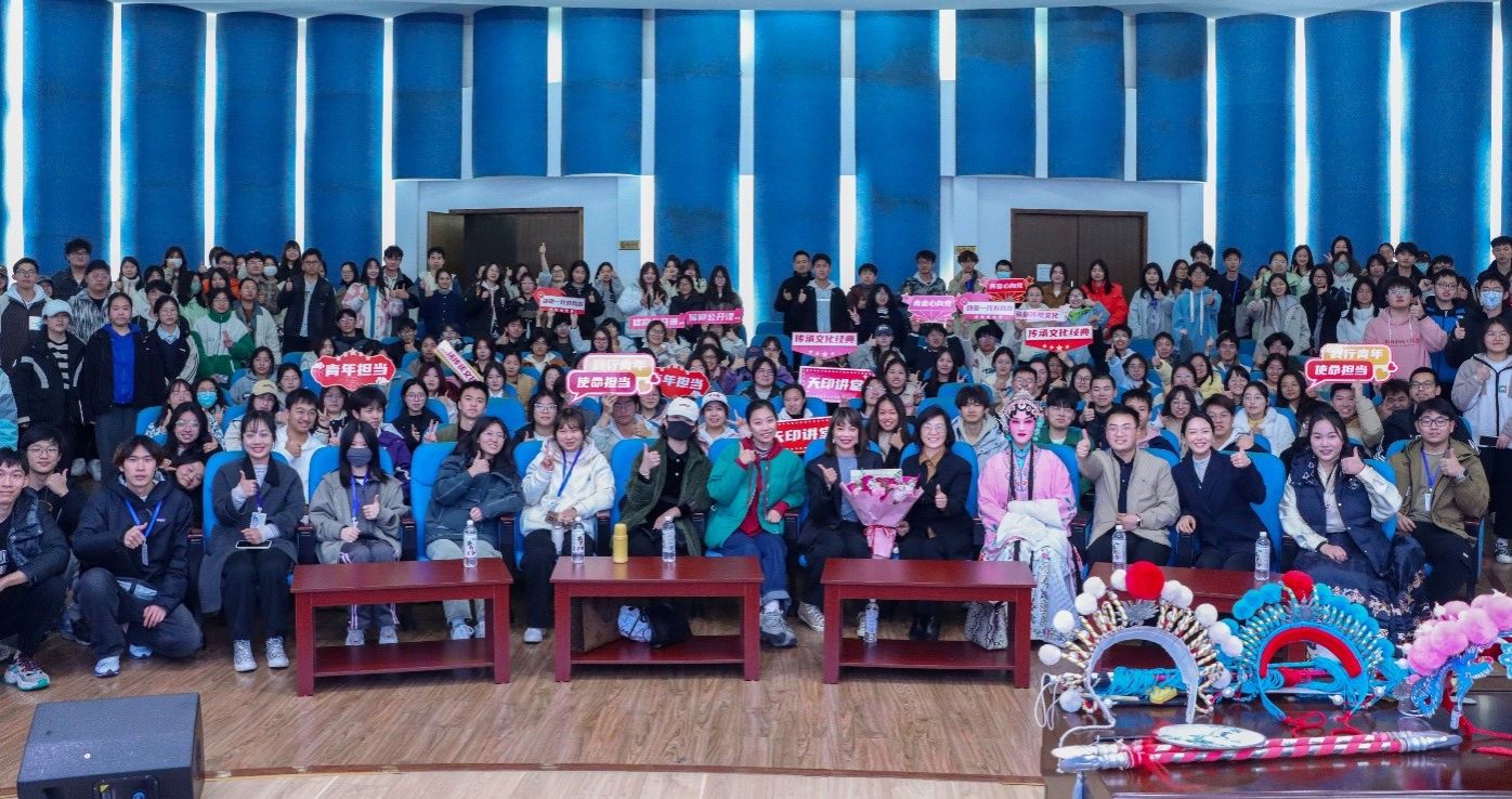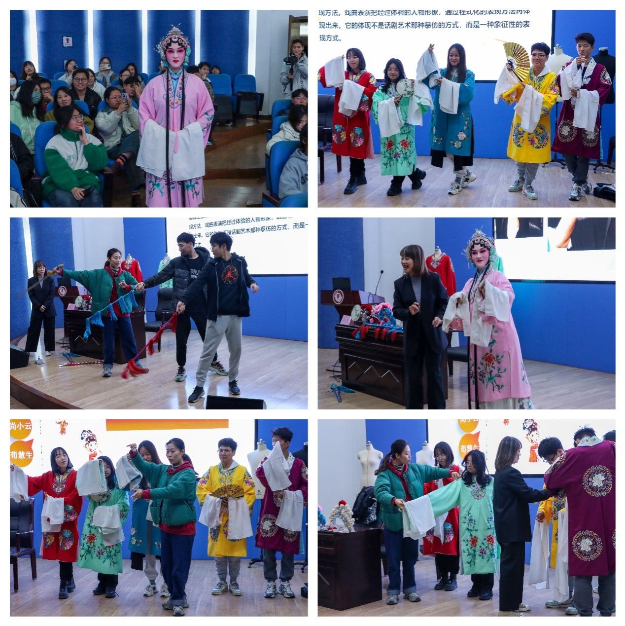 讲座中,高飞老师从“京剧诞生”“博采众长”“文化传播”三个方面介绍京剧文化,并通过精湛的演技、动人的唱腔,赢得了在场观众的阵阵掌声。现场同学也积极参与互动,亲身体验京剧的妆容塑造、身韵动作以及京剧服饰、道具,沉浸式感受京剧的韵味与魅力。整场讲座通过“知识讲解+体验互动”的方式,加深了同学们对中华传统文化的理解和认知,引发大家的强烈共鸣。