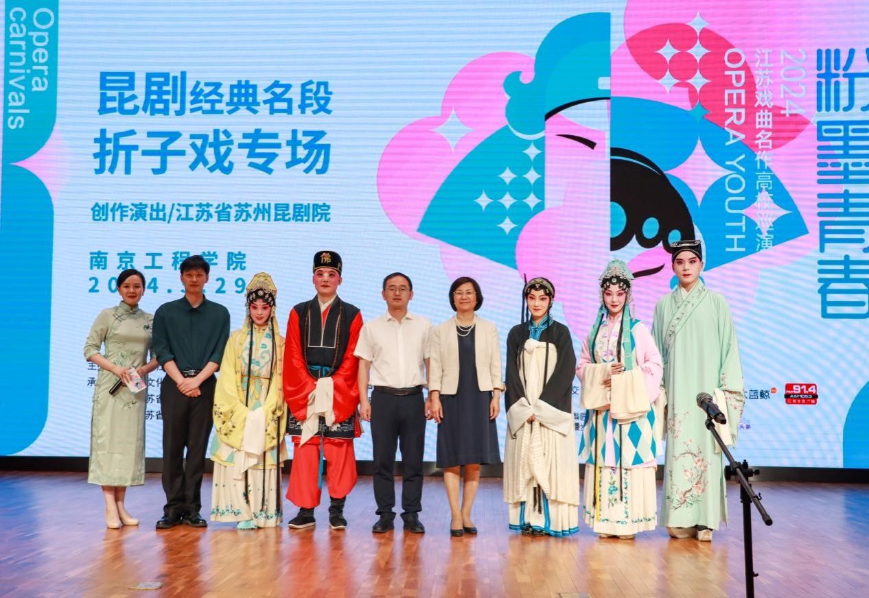 悠悠水磨腔,青春曲韵长。5月29日晚,2024江苏戏曲名作高校巡演——昆剧折子戏专场在学校科创园天印会议中心上演。活动由省委宣传部、省教育厅主办,苏州昆剧院承办,党委常委、副校长汪群,相关职能部门负责人、师生代表共同观看演出。