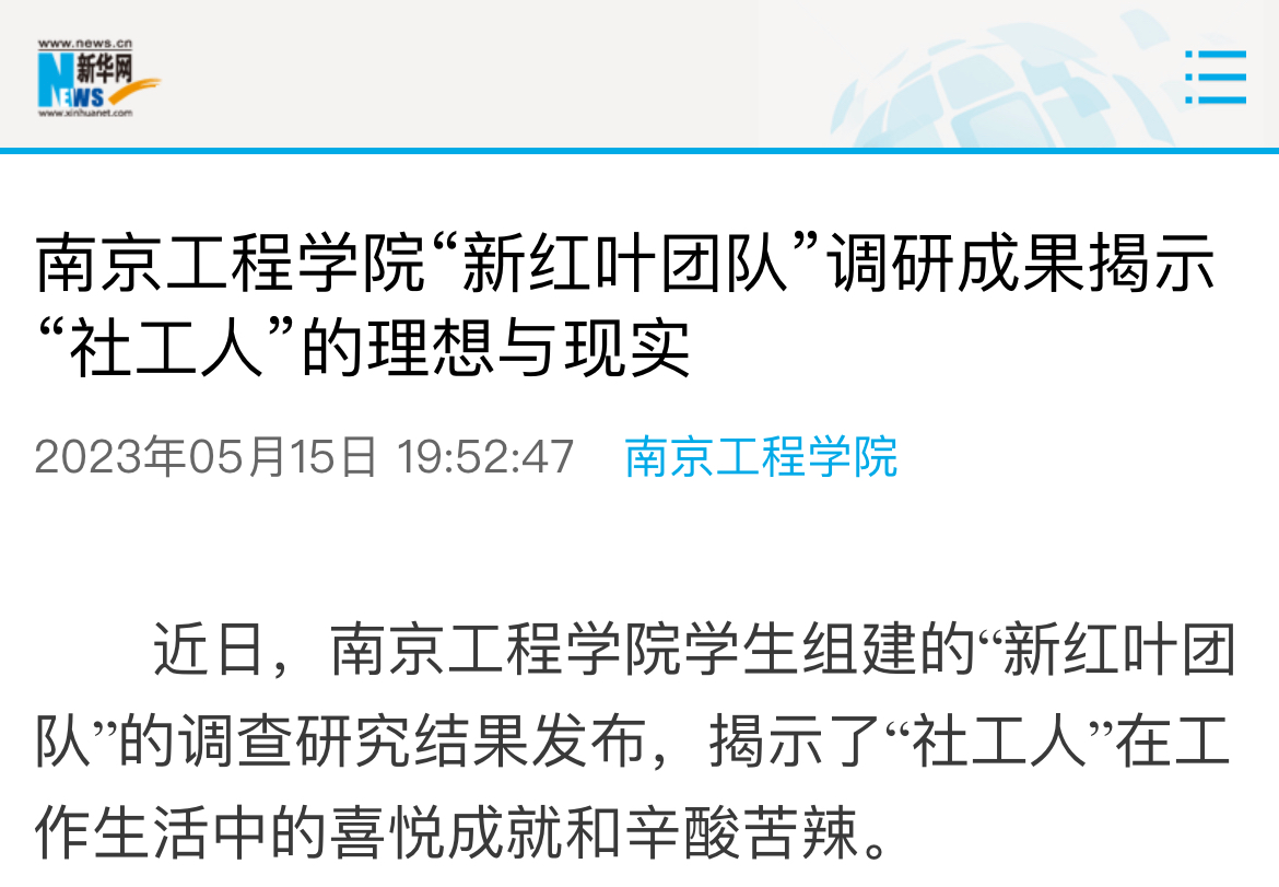 近日,威尼斯7026官网学生组建的“新红叶团队”的调查研究结果发布,揭示了“社工人”在工作生活中的喜悦成就和辛酸苦辣。
