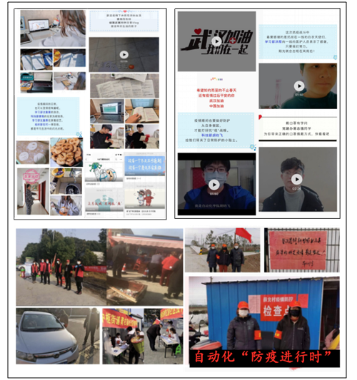 学院学子积极响应号召,夯实疫情“微型防线”。自动化183的程平同学在南京市溧水区蒲杆村进行志愿者活动;自动化183的孟振浩同学在苏州吴江盛泽镇前跃村卡口替外来务工人员进行身份信息登记,检查外来车辆;数控182蒋辰雨、机器人193陈苏芃、测控191王采旖、数控191黄蓉等同学都纷纷投身到就近社区的防疫志愿服务中。为号召同学们宅家防疫,学院提供了宅家分享平台,鼓励同学们积极分享阳光积极的生活状态,同学们通过秀厨艺、打卡学习、录日常生活vlog、亲身示范防疫常识以积极乐观的态度“宅”出了各色新花样,让这个别样的假期充满了正能量。学院学子还纷纷录制个人心声视频致敬这场战役中逆行的白衣天使、解放军战士、志愿者,为他们送上最诚挚的祝福与感谢。