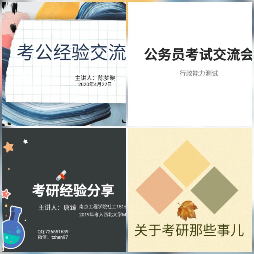 4月21日晚,人文与社会科学学院“云端”考研考公交流会首场直播上线。该院4位优秀毕业生分别结合自身考研、考公的经历与同学们进行交流,指导大家如何复习迎考。在首场活动中,该院2015级选调生陈梦晓根据自身经验,向大家分享了学习计划和应试技巧。她表示,在学习时要建立理论框架,做到劳逸结合,鼓励同学们即使在家复习也要卯足信心打赢这场持久“攻坚战”,调整心态,积极备战。虞培鑫从考公的内容准备、复习方法、考试题型等方面进行分享。他借助真题,帮助同学们近距离地了解公务员考试,并用通俗易懂的方式指导同学们如何进行慎重选择,为准备考公的同学提供了新颖的思路。就读于西北大学的唐臻同学从择校和专业、初试、复试、调剂四个方面与同学们进行交流,就复习方法、参考资料选择、考研心态调整等问题作了详细的讲解。南京师范大学研究生王欣同学强调自律是考研的基础,自信是考研的保障。尤其是在受疫情影响延迟开学期间,同学们一定要合理规划复习时间和进度,不可有一丝懈怠。4位毕业生还对同学们备战期间的各种疑惑一一进行解答、即时互动,鼓励大家保持学习热情、坚定考试信心,同学们纷纷表示获益匪浅。