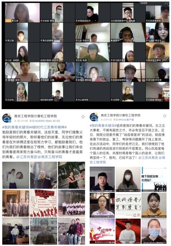鲁迅先生曾说:“愿中国青年都摆脱冷气,只是往上走……有一份热,发一分光……”为了勉励学院青年继续弘扬爱国、进步、民主、科学的伟大五四精神,并赋予其新的时代内涵,把爱国情、强国志、报国行自觉融入到日常学习和生活中,该院举办了“我的青春关键词”活动,鼓励青年人用自己的理解将青春高度概括。活动以抗疫青年故事切入,结合各行各业青年的奋斗经历,开展线上主题讨论和微博话题讨论,学生们积极参与到讨论中来,说出自己的“青春关键词”。软件171班高立强同学的青春关键词是“奋斗”,他认为奋斗是一个人、一个社会、一个民族永恒不变的追求,奋斗就是生活,就是人生写照。网络工程(嵌入式)172班沈思婷同学的青春关键词是“热爱”,她认为“志向和热爱是伟大行为的双翼”,热爱可抵岁月漫长,热爱会成为坚持的动力。同学们表示此次活动让他们对青春有了新的理解和启发,也让大家对自己的人生有了新的思考和感悟。