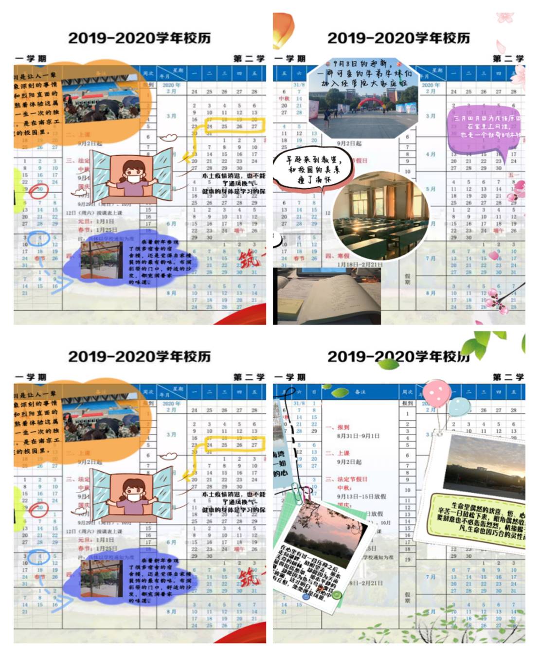 “相知”部分,为引导广大团员树立爱校荣校意识,鼓励大家回忆在南工程的点点滴滴,学院开展制作校历的活动。同学们积极响应,凭借在南工程收获的爱与回忆,制作出一份份别出心裁的校历。校历上的每一个独特标志都是对南工程独一无二的认识,每一段文字都是一段非同寻常的经历,无一不展现了经管学子对学校的无限热爱。