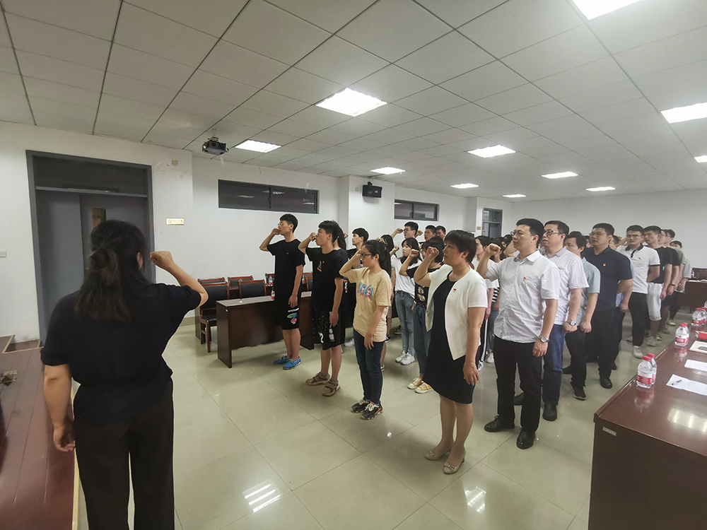 会议在雄壮的国歌声中开始,会中老师们为毕业生党员佩戴党徽,叮嘱同学们时刻牢记党员身份,不忘入党时的初心和使命。全体党员在张兴丽副书记的带领下重温入党誓词,牢记党的宗旨,坚定理想信念。