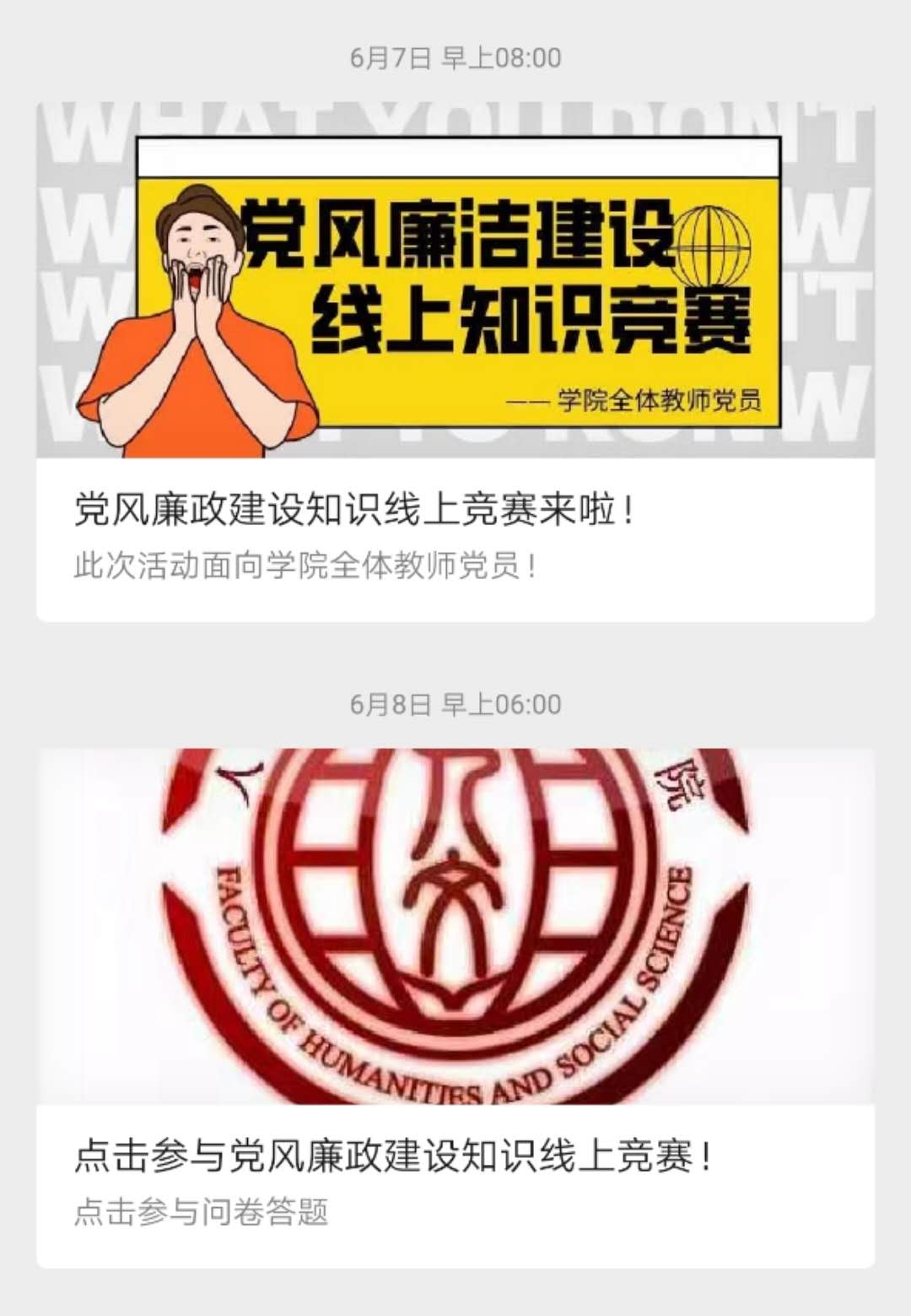 学党纪、守纪律、讲规矩、作表率​——人文与社会科学学院党总支开展党风廉政建设线上知识竞赛