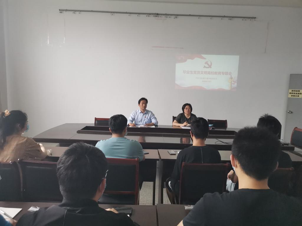 为进一步做好2020届毕业生党员教育管理工作,切实发挥党员的模范带头作用。6月初,该院在工程实践中心3-308召开了毕业生党员文明离校教育专题会。院党总支书记章启成对全体毕业生党员提出四点希望:一是要有所担当,带头做好文明离校;二是毕业不是党员身份的终结,踏上社会才是对“党员”身份的真正考验;三是常怀感恩之心,常回母校看看;四是在以后的学习、工作和生活中,保持党的先进性,充分发挥先锋模范作用,为实现中国梦贡献自己的力量。副书记王灿勉励毕业生党员在进入新的工作岗位后,能够继续加强党的理论知识的学习,坚定理想信念,做有理想有抱负有信仰的人。