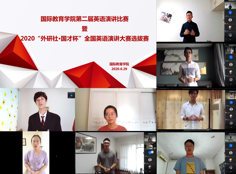 为了促进大学生跨文化沟通能力及综合能力的整体提高,6月30日,国际教育学院在腾讯会议举行了第二届英语演讲比赛暨2020年“外研社·国才杯”全国英语演讲比赛选拔赛。参赛选手们在云端舞台上言展灵思、智慧铿锵,彰显当代大学生气度风范。国教院全体教师及学生全程观摩了比赛。