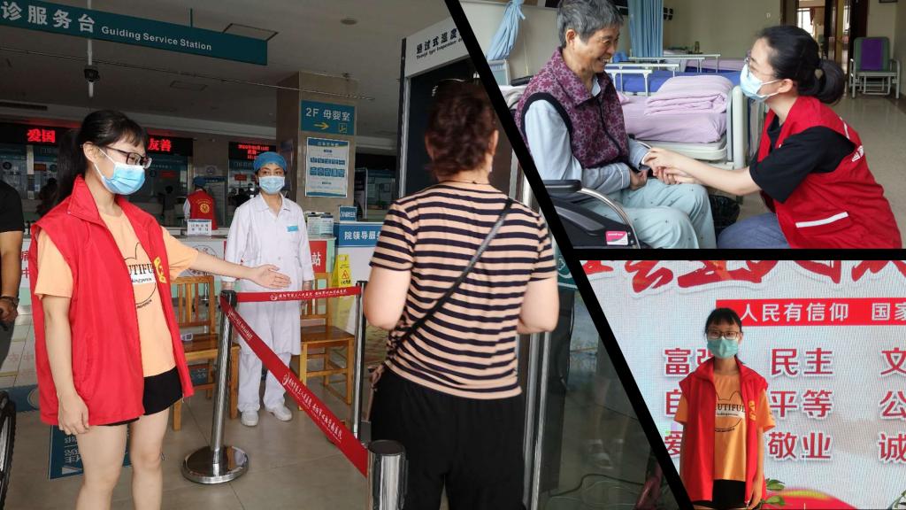 受抗“疫”精神的鼓舞,“时代青年”小队成员们继寻访支援武汉的抗疫英雄之后,迅速投身实践之中。在家乡的医院,成员们帮助医护人员给患者科普健康知识、收集患者反馈,以责任担当唱响“实干之歌”、以服务人民唱响“青春之歌”,争做有理想、有责任、有担当的新时代青年。