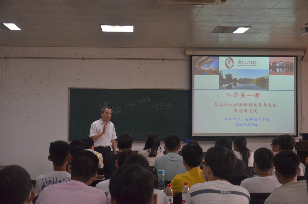 中心党总支书记周明虎老师在D机械201班会上,向同学们介绍了中心的人才培养特色,从数控行业的现状和趋势入手为大家分析专业发展方向,希望同学们制定好生涯规划;他就学生具体的学习目标和方法提出了建议,并叮嘱大家遵守防疫规定,管理好自身日常生活。创新创业学院副院长陈巍老师是D自动化202班的第二班主任,作为经验丰富的学生科创竞赛导师,陈老师鼓励大家积极申报专利、撰写学术论文、参与科研项目和各类竞赛。中心工会主席吴京秋老师在D自动化201班会上,给同学们做了三点提示:一是思想进步,热爱祖国,爱护学校,培养集体荣誉感,不断融入班级。二是学好基础课,在大一阶段不要贪多,特别重视高数、英语等基础科目,班级要形成良好的学习风气,注意学习方法,温故知新。三是生活上,要严格要求自己,良好的作息习惯,在与舍友友好相处中学会宽容,诚信做人。据悉,工业中心第二班主任将会深入参加2020级新生入学教育,在新生教育各个环节发挥作用。