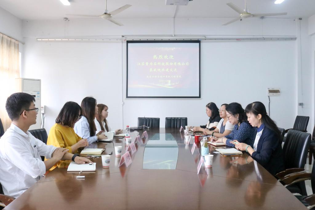 为加强校企联系,促进产学研深入合作,进一步推进优质就业基地建设,9月29日上午,江苏量为石科技股份有限公司招聘主管冯丽娜一行回访计算机工程学院,受到了该院院长黄陈蓉、副院长黄纬、党委副书记兼副院长刘艳华的热情接待,双方就优质就业基地建设展开了深入交流。