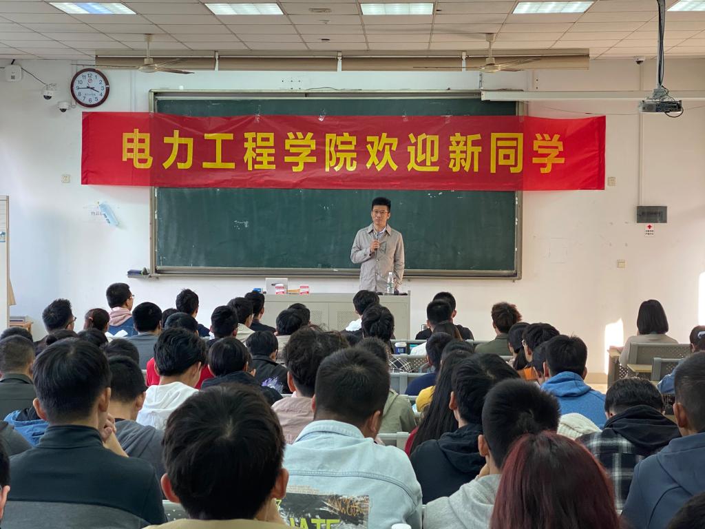 郝思鹏院长欢迎大家加入电力工程学院这个大家庭,他结合近几年就业形势的变化,深入分析当前电力行业对学生综合素质的要求,鼓励同学们要保持持续的自我学习能力,积极投身科创,不断深造,争取成为卓越的电力人才,以更全面的能力和饱满的热情投入到国家电力事业发展中去。希望在座的每位新同学们能够在电力学院的学习中不断成长、拥有更加光明的前景。电力系统教研室陈凡老师给全体转专业新生做专业介绍,陈老师介绍了电力工程学院的课程特点以及电力行业与人工智能相结合的发展趋势,他勉励同学们要踏实学好专业课,通过投入科创,全面提升个人的科研水平。