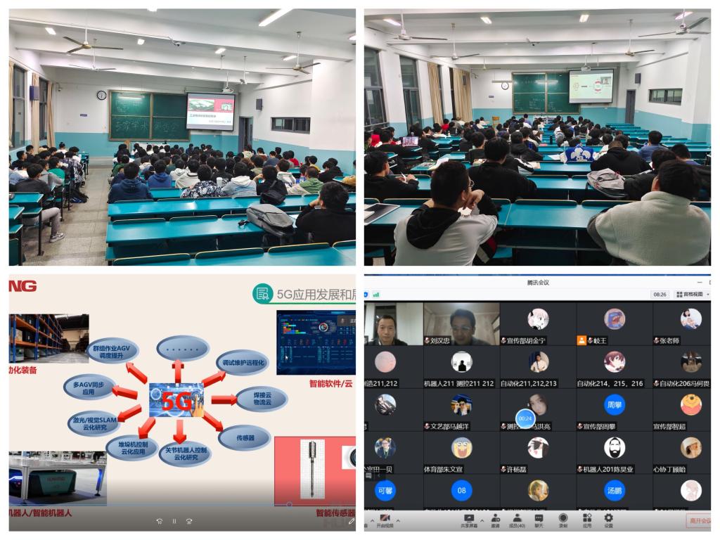 朱伟总经理通过展示具有行业代表性的视频,用浅显易懂的语言向同学们展示了自动化学院所学知识的广泛应用。他以立体仓库、生物科技、蔬菜种植、AGV等为例与同学们进行讨论,提出自动化、智能制造技术对于解决工厂仓储、效率和成本等基础问题的重要性,同时就自动化专业的人才需求和市场前景作详细阐释,并重点讨论了5G技术的特点和5G技术在AGV方面的痛点与应用前景,向同学们展示了5G技术的实际应用和意义。“从朱经理的演讲中学到了许多关于自动化的相关知识,感悟到国家对于自动化相关专业高端人才的迫切需求,坚定了自己学习自动化专业的决心!”培训结束后,自动化214冷秋阳同学感慨道。