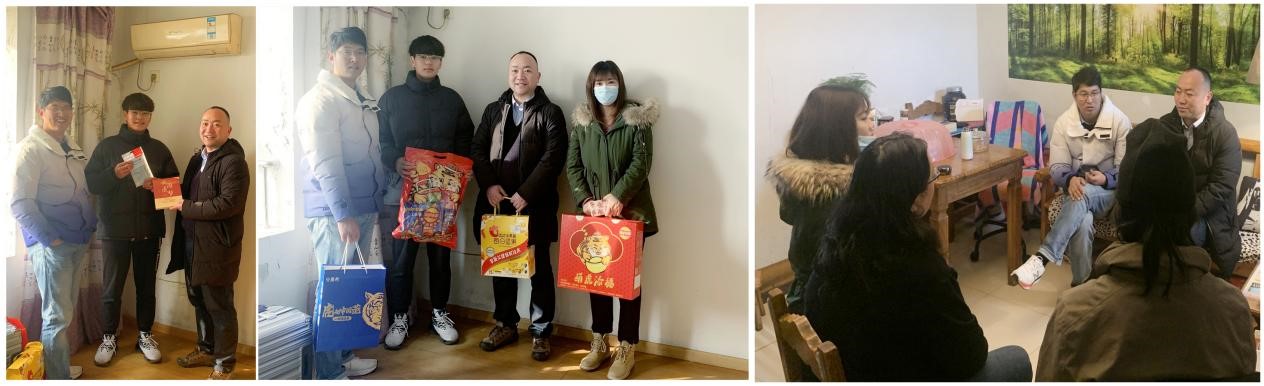 2021级陕西咸阳籍学生吴朝文同学,因疫情需在南京租房过年,18日上午,学院学生工作负责人及学工办辅导员一行来到吴朝文同学的临时住所,在表达关心问候的同时也为他送上了生活必需品,叮嘱他要注意安全,也要做好心理调节,有困难随时和学院取得联系。此外,学院学生工作负责人还为他送上《大国追梦》的书籍和防疫物资,希望他坚定理想信念,勇于战胜挑战。学院一行前往家庭经济困难同学家中进行深入交流与慰问,送去了生活用品和学习用品,积极开展宣传国家资助政策,仔细询问学生在家中的生活与学习情况,鼓励学生克服困难,在逆境中自强不息、刻苦学习,争取以优异的成绩回报父母、回报学校、回报社会。