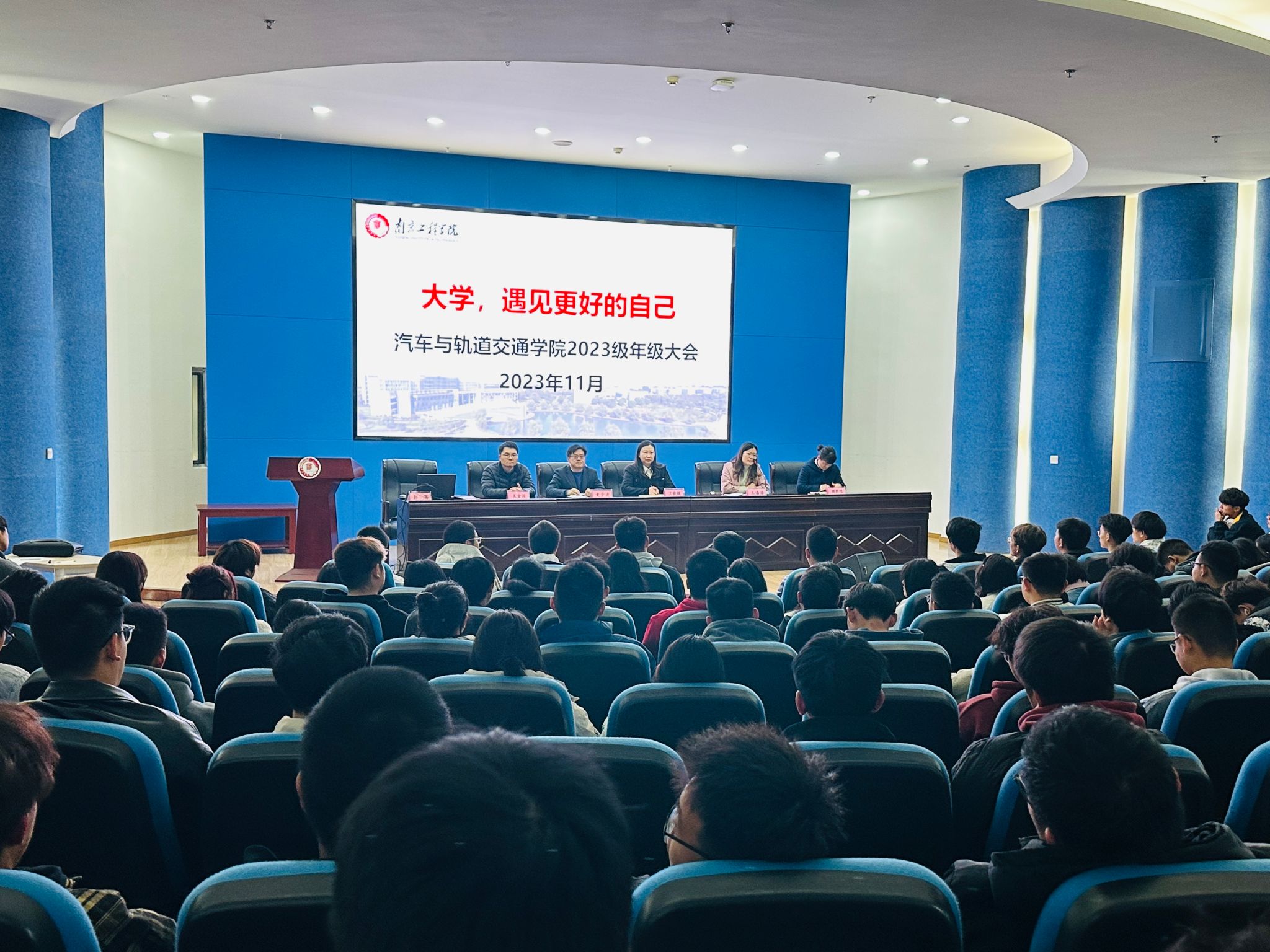 11月15日,汽车与轨道交通学院在图书馆学术报告厅举办青春故事分享会暨2023级新生年级大会。优秀校友代表、南京智禹航模技术有限公司总经理谭家兴,天印•泠风车队学生骨干杨骏杰担任主讲人。学院党委书记王薇薇、党委副书记王潘潘、副院长文少波、教研室主任代表、年级辅导员和全体2023级学生共同参加了本次活动。