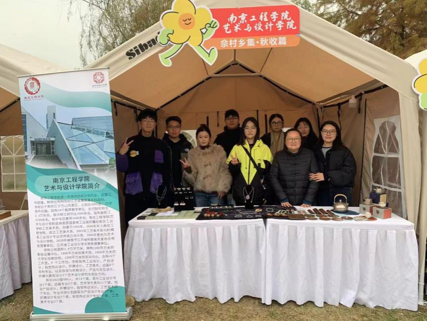 为了推动江苏美丽乡村建设,促进非遗与文旅的深度融合,为地方经济建设贡献高校智库力量,11月25日与26日,艺术与设计学院首饰工作室师生团队受邀参加南京江宁的佘村乡集,将中国传统银花丝、珐琅工艺等非物质文化遗产的文创产品与体验项目带向公众。