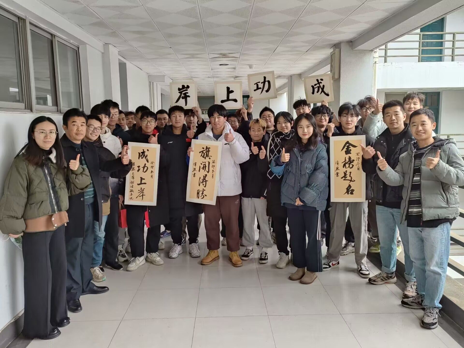 活动中,老师向同学们讲解了中国书法的文化内涵及书写的注意事项,引领同学们学习书法结构,介绍书法作品形式的重要性,现场指导学生们进行实践。经过学习,一幅幅书法作品被创作出来,学生们在卡片上写下自己对考研学长学姐的祝福。随后师生一行前往东十一学生宿舍和自习室,为考研学子送去书法作品和暖心小礼品,祝愿考研学子泼墨挥洒,描绘锦绣前程,克服考研焦虑,坚定不移奔向梦校。“没想到这字竟然是学弟学妹们亲手写的,真的太暖心了!感谢学院和老师们的关心,我们一定坚持到最后”,机工202班刘金鑫说道。