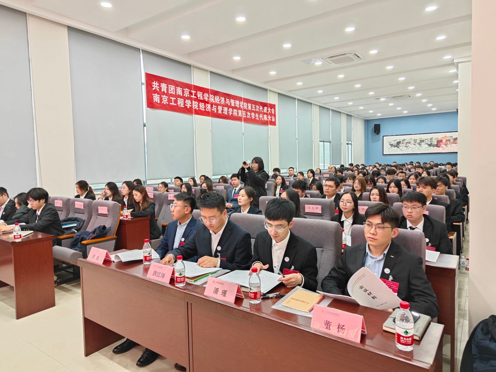 12月13日下午,经济与管理学院第五届团员代表大会、学生代表大会在至诚苑·经管楼A107举行。校团委、校学工处相关负责人,校学生会主要学生干部,经济与管理学院党政负责人以及学院教师代表和全院青年学生代表共180余人出席大会。