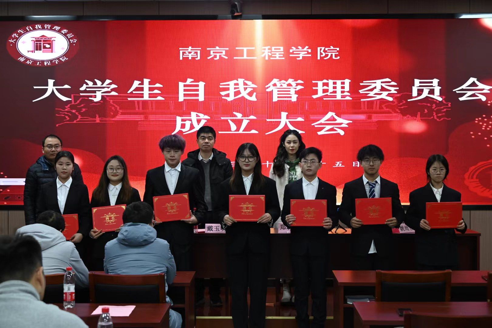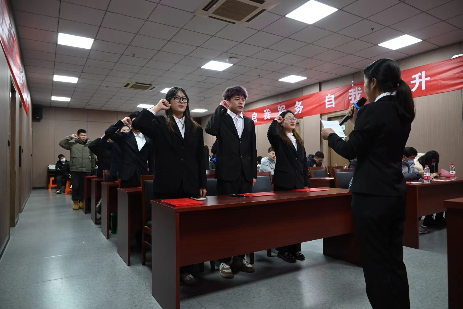 与会领导老师为第一届受聘学生干部颁发聘书,自管会第一届全体成员进行了宣誓。