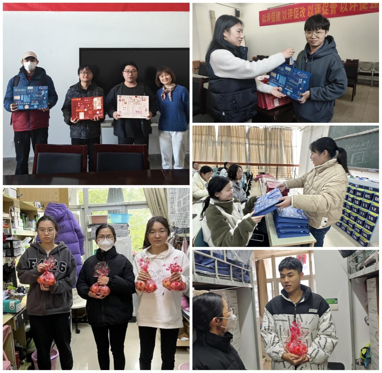 活动中,学院负责人、老师以班级为单位通过班会或下宿舍等形式,为同学们赠送考研慰问“礼包”。印有“前程似锦”“万事如意”“乘风破浪”“逢考必胜”等温馨祝福的文具套装和寓意“心想事成,考研顺利”的水果礼袋,让考研学子纷纷表示欣喜,充分体现出学院对同学们的人文关怀。交运201班史芊芊同学感动地说:“感谢学院为我们精心准备的考研慰问礼包,我们一定要拿出最好的考试状态,带着这份美好的祝福走进考场,考出理想成绩。”