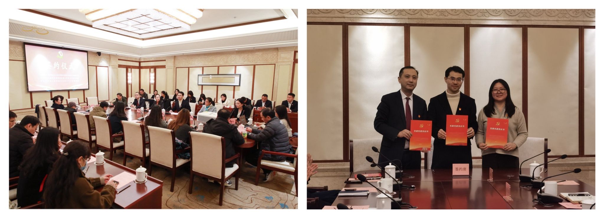 观展结束后,学院环设视传动画教工支部、江苏大剧院运营管理有限公司第四支部委员会、江苏钟山剧院服务有限公司支部委员会三方签订了《党建共建协议书》,就共筑组织基础、共促队伍建设、共解群众急难、共办实事好事、共谋三方发展等五个方面展开深度合作。今后,共建三方将立足各自的实际和特点,有效整合三方在党建、艺术、文化等不同方面的资源优势,以党建引领艺术,以艺术创新党建,把坚持和加强党的全面领导与创新发展艺术教育高度契合,探索“党建+艺术”工作模式,强化美育育人实效,用美育助力艺术与设计学院事业高质量发展。