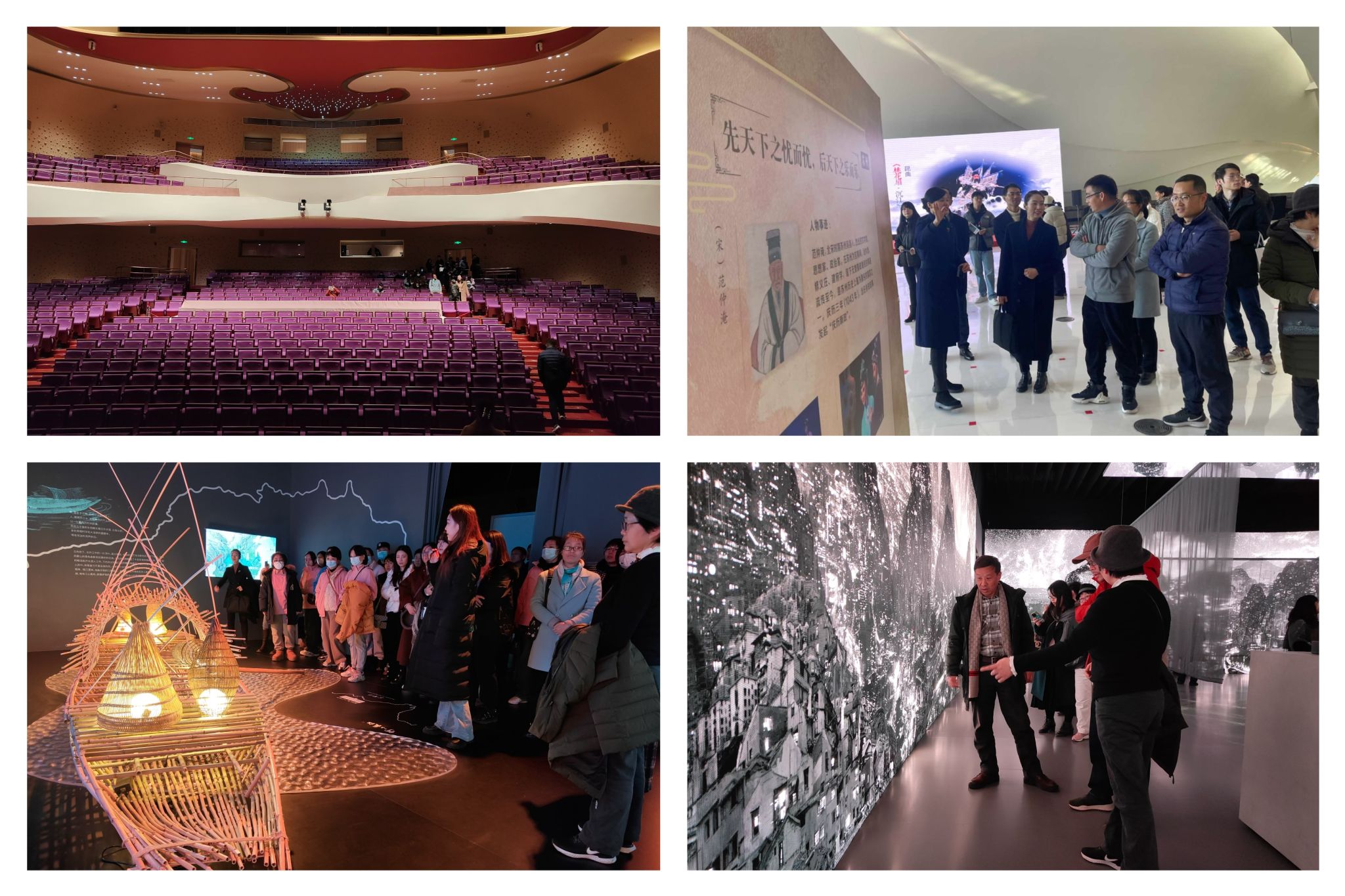活动中,江苏大剧院运营管理有限公司负责人带领教师们参观了江苏大剧院音乐厅、歌剧厅、综艺厅和戏剧厅四大主题空间,大家走上舞台,走进幕后,以独特的视角近距离感受艺术空间之美。在《戏里戏外——大运河沿线的清官廉吏》主题公益展览中,党员同志们更是现场接受了一次生动深刻的精神洗礼。随后,全体党员共同参观了《何以长江——长江文化数字大展》,此项展览是全国首个长江主题数字展览,旨在通过数字技术呈现长江及其流域的美学、文化,以及随着时间推移而发生的巨变。2500平方米展厅内,以数字长卷、纸本水墨、分屏影像、水印木刻、手工艺装置、声音可视化装置等形式呈现的12大展项让大家耳目一新,所有人仿佛穿越时空,置身于古老的长江文明之中,感受长江文化的源远流长。参观的党员教师们纷纷表示,作为一名艺术教育工作者,有责任积极发掘中华优秀传统文化资源,将中华美学精神和当代审美追求结合起来,为传统文化注入现代价值,做中华优秀传统文化的忠实传承者和坚定弘扬者,为推进文化自信自强贡献力量。