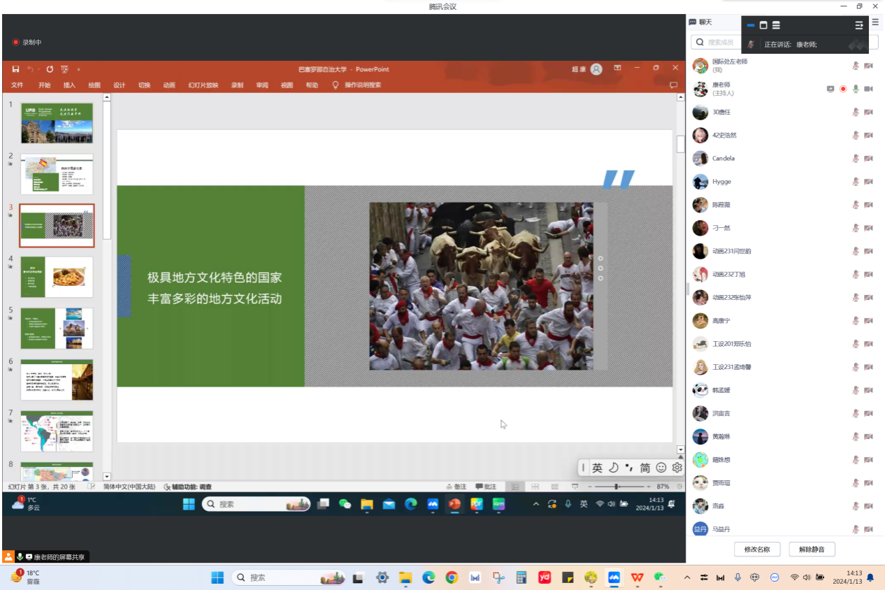 1月13日下午,国际合作与交流处、艺术与设计学院联合举办西班牙巴塞罗那自治大学艺术与设计专业硕士研究生招生讲座,西班牙巴塞罗那自治大学中国招生办公室代表通过在线会议的方式为艺术与设计学院师生介绍了该校EINA艺术学院的硕士研究生招生计划,80多位艺术与设计相关专业的大三大四学生参加讲座。