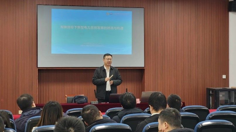 近日,经济与管理学院邀请东南大学汤奕教授在经管院A303作主题为“双碳目标下新型电力系统发展的挑战与机遇”的学术报告,能源技术经济研修班全体学员、经管学院各系部分青年教师及博士等认真聆听了报告。