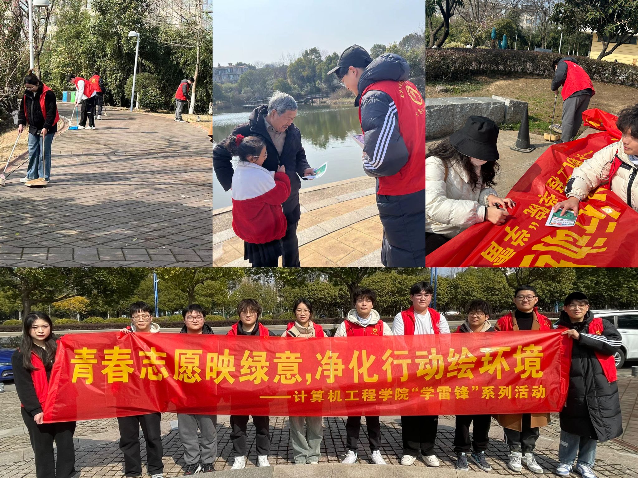 青春志愿映绿意,环保先锋我争当。为引导广大市民树立环保意识,该院志愿者们前往江宁大学城公园开展垃圾清理、公共设施清洁活动,并设立“保护环境,共建绿色家园”宣传站,向前来参观的游客宣传环境保护的重要性。活动现场,志愿者们呼吁广大市民在日常生活中做到低碳生活、践行垃圾分类,邀请大家在“青春志愿映绿意,环保先锋我争当”的横幅上进行签字留念。“保护环境,从你我做起,希望这次活动让保护环境、绿色低碳、健康生活的理念更加深入人心。”本次学雷锋活动的志愿者秦卫莹呼吁道。