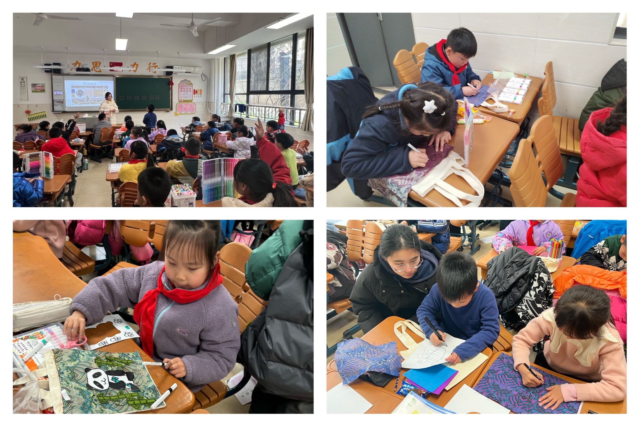 “小朋友们,你们知道什么是海上丝绸之路吗?”“我手上拿的物品,哪些是国外传进中国的呢?”活动伊始,商务英语221班杨晨奕通过图片介绍和视频展示,带领小学生们重走海上丝绸之路,大家聚精会神地聆听,踊跃举手发言。“瓷器、云锦都是通过海上丝绸之路传播的物品,展示了我国博大精深的文化内涵和引以为傲的文化传承。”生动细致的讲解让小朋友感悟到海上丝绸之路不仅仅是商品的交流,更是东西方文化的交融,对文化自信有了更深的理解。活动现场,同学们带领小朋友们用锦缎布料动手制作DIY云锦创意作品,画、剪、贴,在一双双灵巧小手的创作下,一幅幅奇思妙想精美作品呈现在眼前。