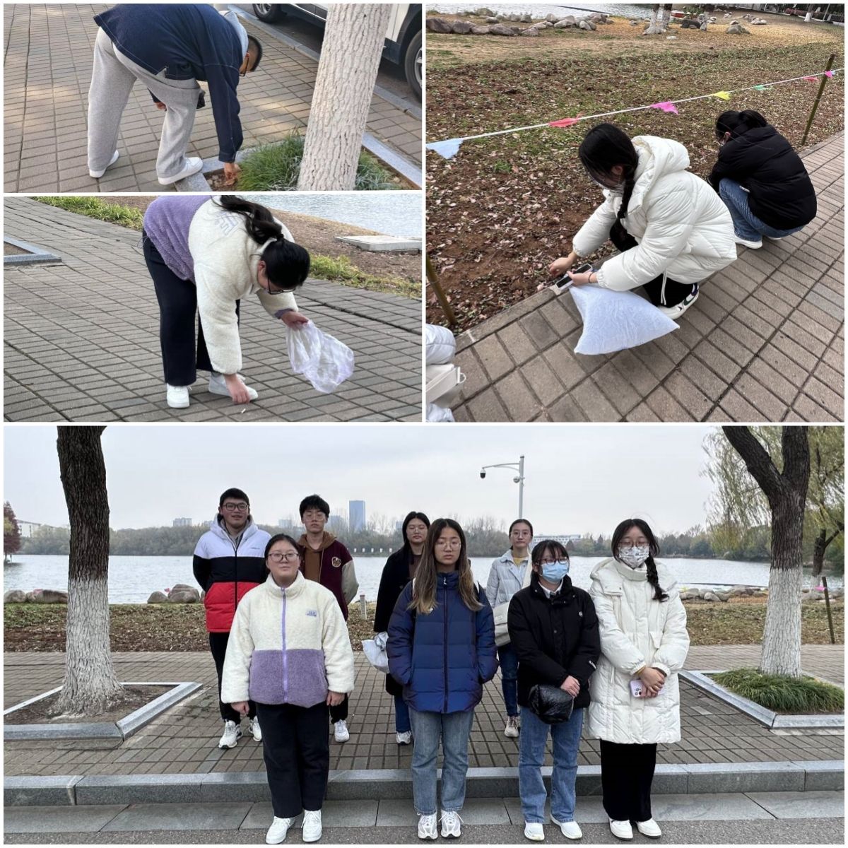 争做追锋青年,传递校园文明。学院组织学生志愿者对天印湖周边人行道、绿化带的杂物、落叶、烟头、纸屑等垃圾进行仔细清理,志愿者们充分发扬不怕苦、不怕累、不怕脏的优良作风,让天印湖更加靓丽;充分利用QQ群、微信公众号等新媒体,积极进行生态环保知识宣讲及普及,有效提升了绿色生态文明理念的宣传教育普及率,带动更多学子踊跃投身于环境保护实践中,积极营造节约资源、保护环境的良好社会氛围。