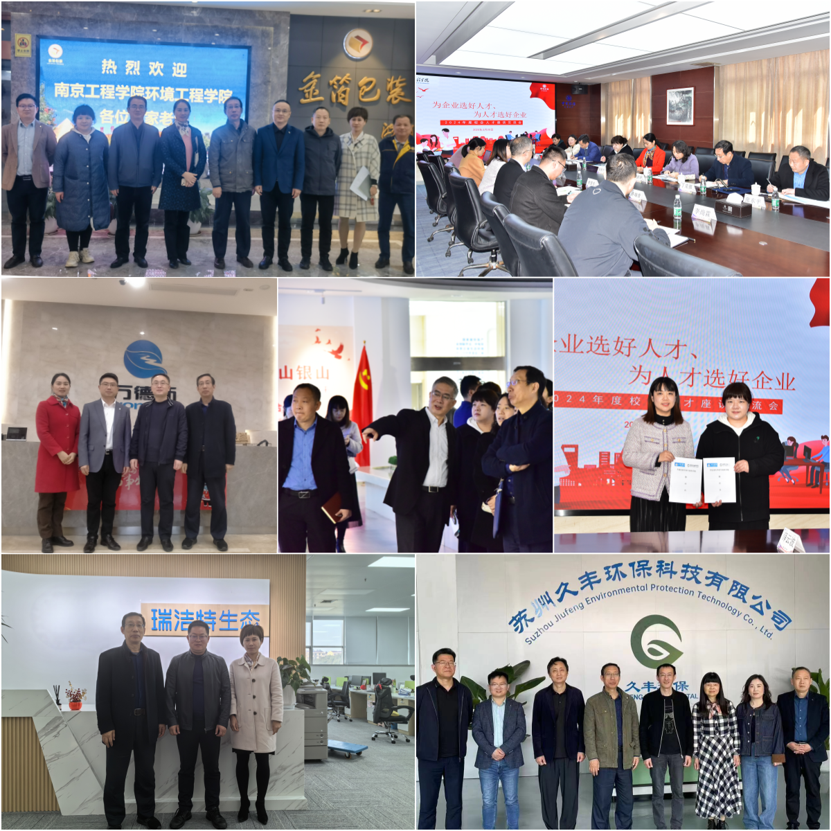 该学院先后走访调研了南京金箔控股集团有限责任公司、南京万德斯环保科技股份有限公司、南京瑞洁特膜分离科技有限公司、中电环保股份有限公司、苏州久丰环保科技有限公司、无锡西玖环保有限公司,与6家单位负责人就深化校企合作、促进产教融合、提升毕业生对口实习就业等问题开展了座谈交流。座谈期间,企业负责人介绍了公司的发展历程、技术创新成果以及在市场上的应用情况,并重点展示了在环保领域的最新研发成果。通过交流,学院充分了解了企业的人才需求与行业发展情况,向企业介绍了2024届毕业生情况与学校、学院的发展历史、发展优势、发展规划及毕业生实习、就业需要,表达了进一步加强校企合作、促进人才供给侧和产业结构需求侧相互融合,实现校企双方互利共赢的愿景,并与部分企业签订了共建高校毕业生就业基地协议。