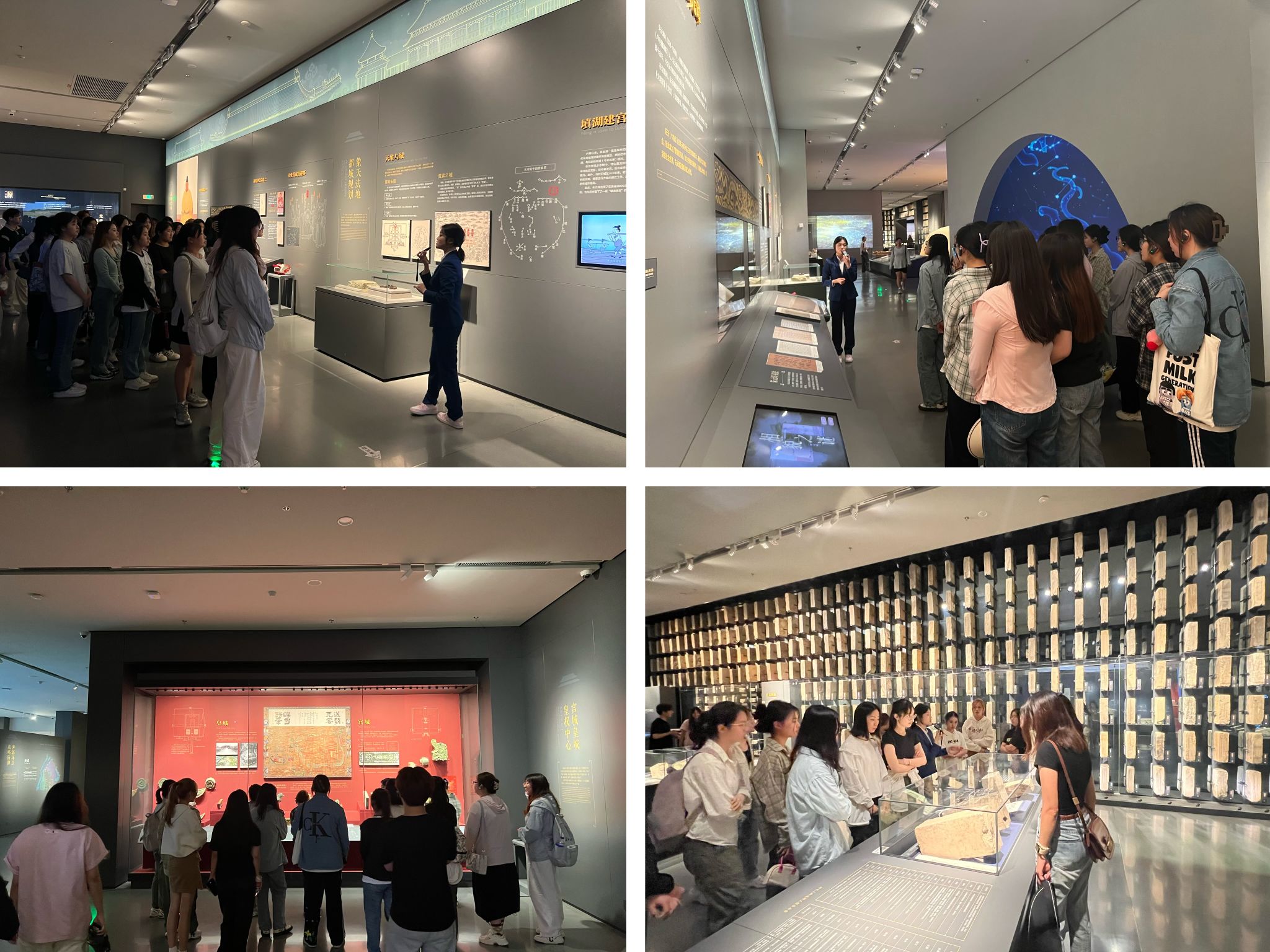 在讲解员的带领下,师生逐一参观了“天地融合 大明之都”“一砖一石 众志成城”“战火洗礼 城垣沧桑”“城墙记忆 遗产传承”等展馆,通过馆内珍藏的六朝铭文铁片、黎川砖窑等珍贵文物以及先进的数字技术手段,深入了解了明代南京城的规划布局和城墙的演变历程,亲身体验了金陵历史文化的深厚底蕴。馆中收藏的“黄州府蕲水县”铭文城砖砖体上刻有67个字,记录了十一级烧砖责任人,是目前南京城墙上发现的责任层级最多的一块,这种精确到人的“物勒工名”责任制,有效加强了制砖工序的管理和监督,确保了南京城墙的城砖质量和数量。