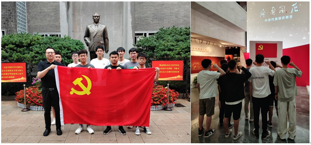 在纪念馆内,师生党员依次参观了周恩来铜像、国共南京谈判史料陈列馆、中共代表团办事处旧址、周恩来图书馆。整条展览路线以时间脉络为主线,严谨周密的文史资料与丰富详实的实物档案交相辉映,充分展现出以周恩来、董必武为代表的共产党人所坚守的不忘初心、清正廉洁、克己奉公的优良作风。师生党员在参观中沉浸式感受周恩来同志纪律严明、一身正气的高尚品格以及革命先烈对党忠诚、永葆初心的精神风范。面对庄严的党旗,研究生党员在革命先辈浮雕下重温对党忠诚而神圣的誓言,并表示要时刻牢记党员初心使命,坚定理想信念,严守党的纪律。