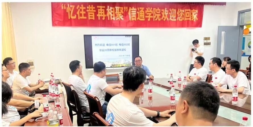 7月6日,信息与通信工程学院电子信息工程专业2004届校友毕业20周年返校欢聚,畅谈别来种种,追叙往日情谊。学院党政负责人、系主任和校友班级班主任参加师生欢聚。
